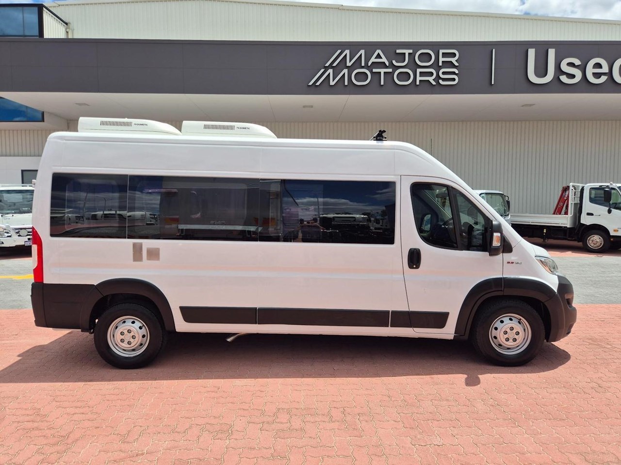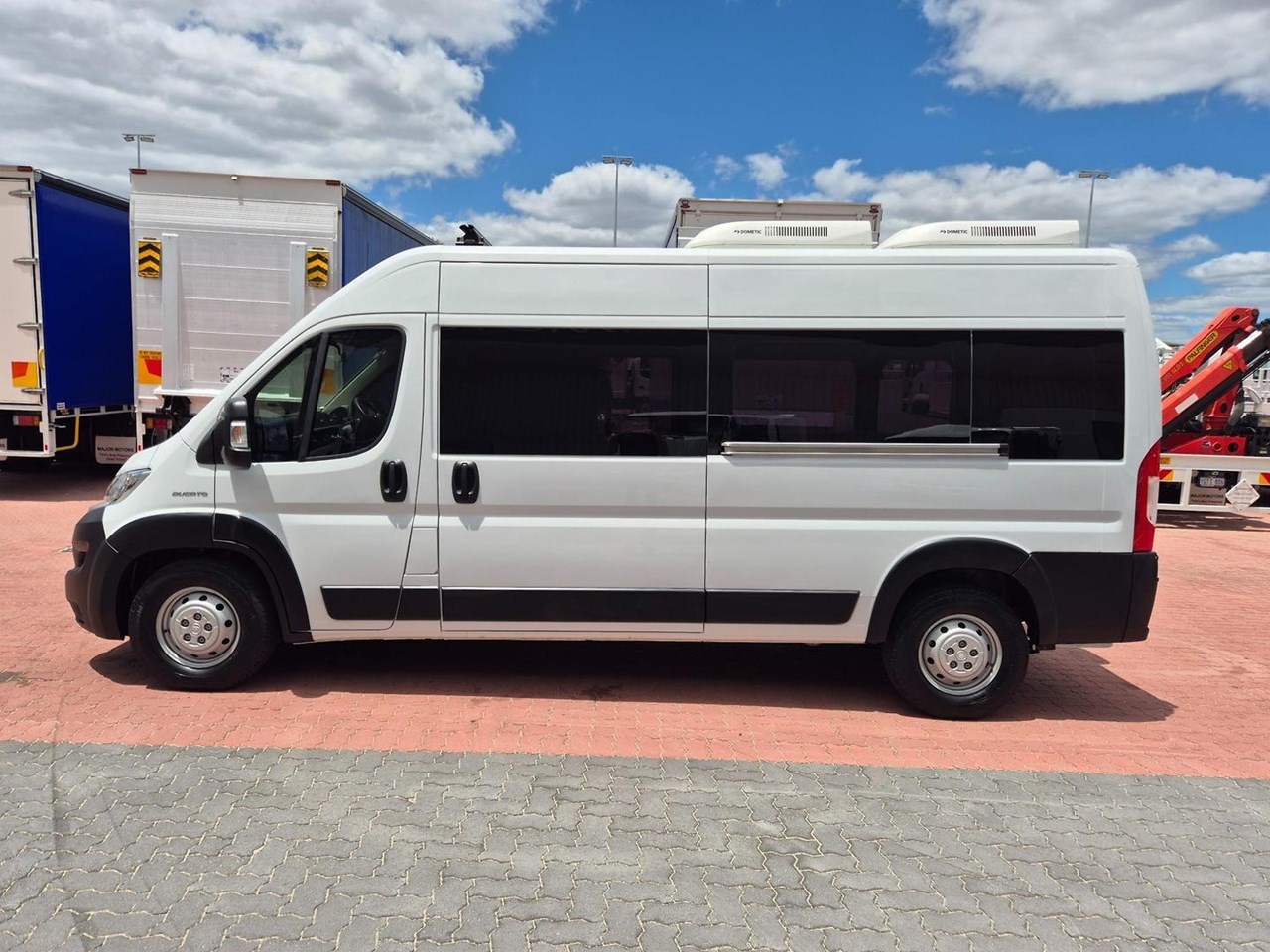 With a Genuine 2,764klms only, this Near New Fiat Ducato is complete with a 180HP Powerplant coupled to a Automated Manual Transmission, Reverse Camera, Fully Lined Sides, Floor and Roof with Downlights and 2 Dometic Air Conditioners.