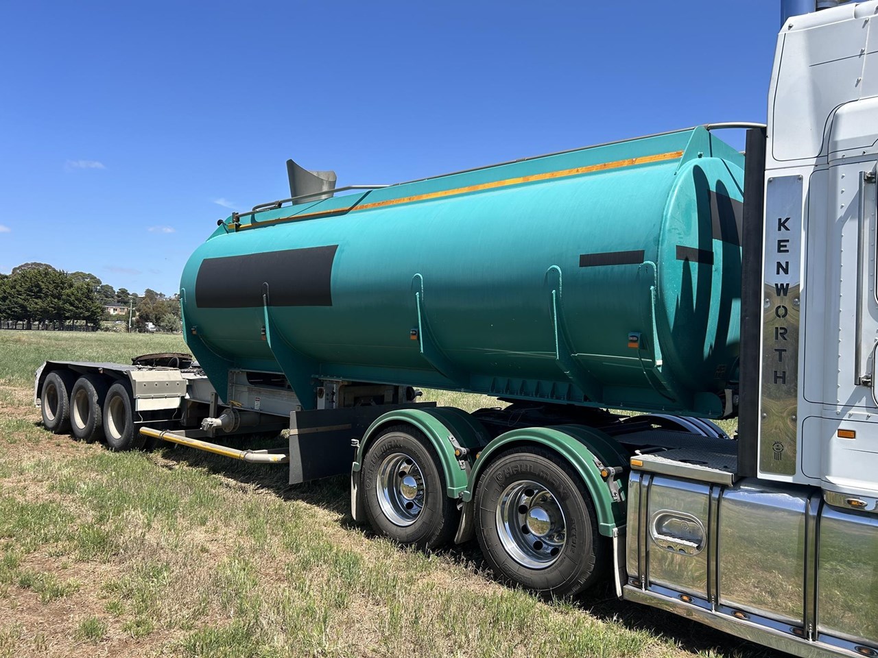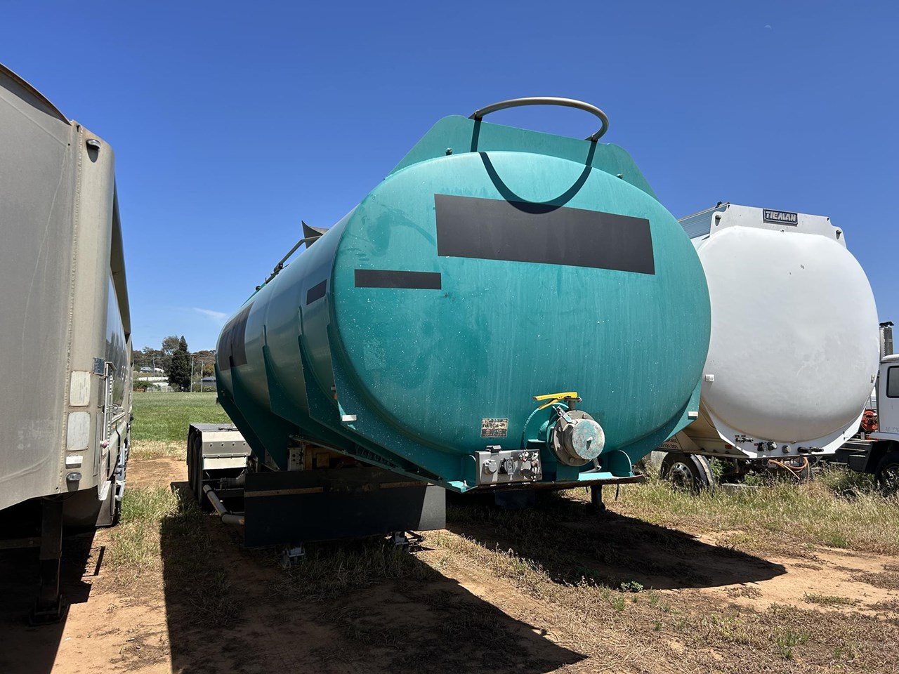 Jamieson Boomer 2014 build 30000 litre aluminium road train lead water tanker . Yanmar diesel powered pump , rear sprays and dribble bar , Ringfeder , BPW airbag suspension , led lights , wind down legs , safety rails on top . We also have a matching A tanker to make a 25 metre b double set at extra price