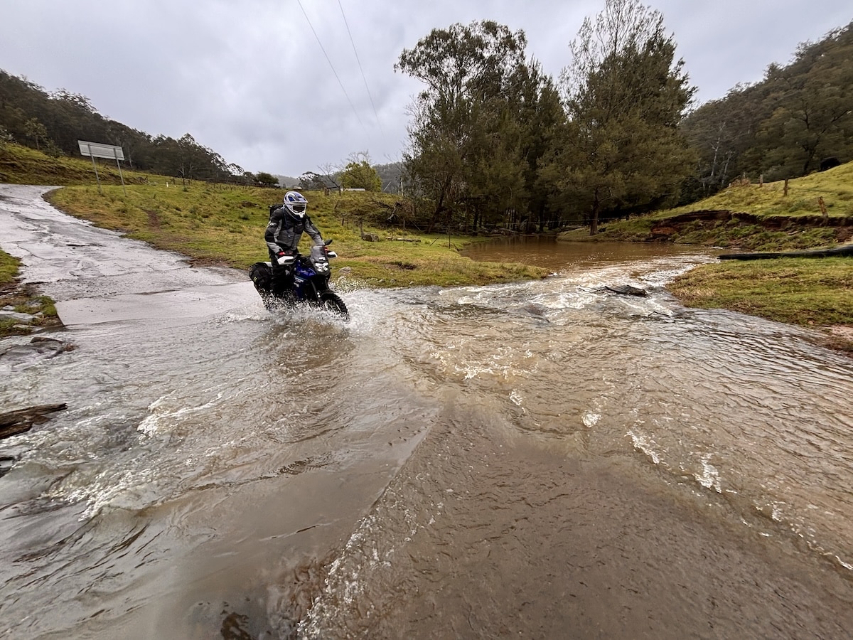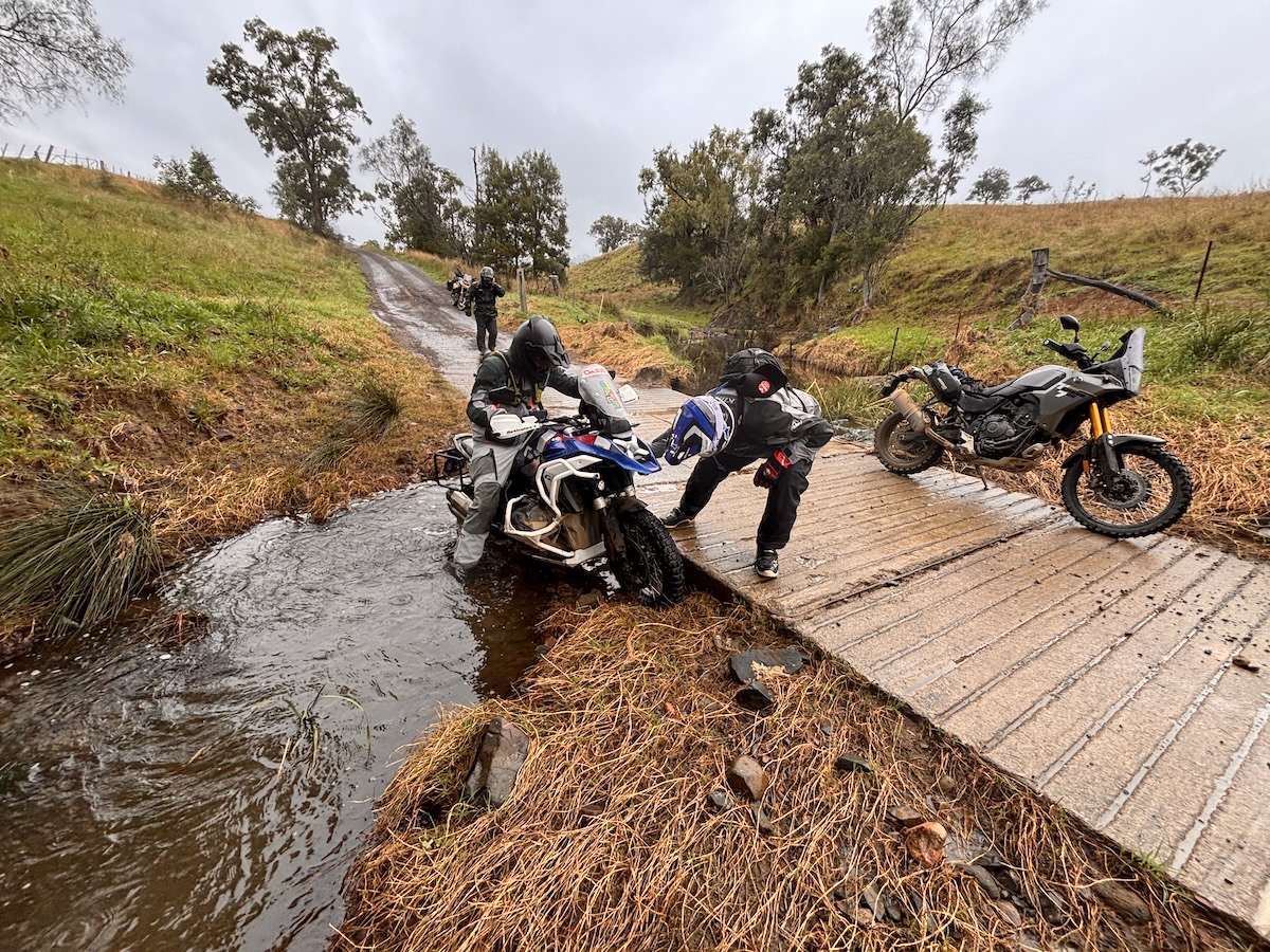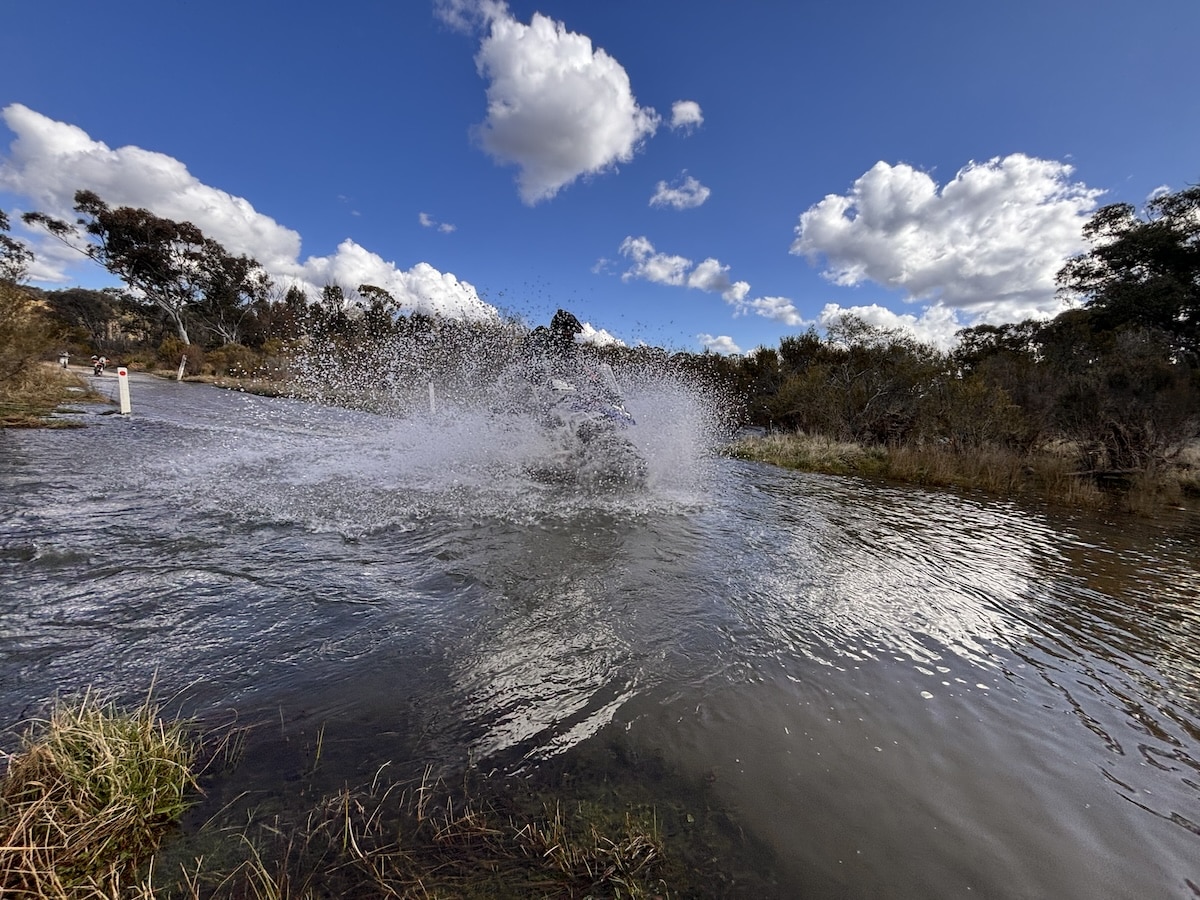 But with Thursday’s deluge, the trails proved tricky with three water crossings featuring decent sized boulders ready to catch you out, muddy paddocks where line selection was critical and the odd rocky hillclimb.